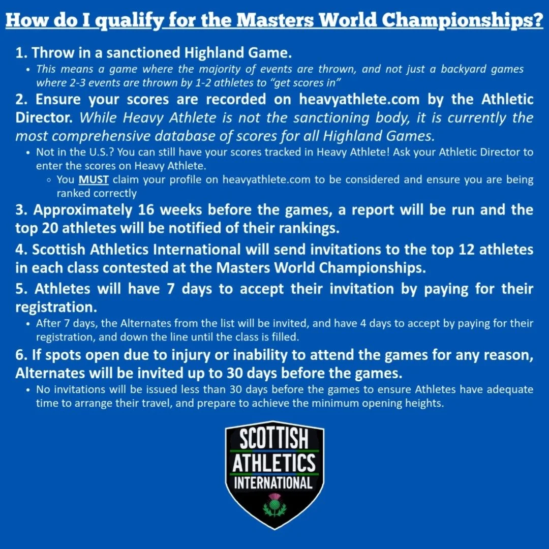 With our recent post about how to qualify for MWC, we've had a lot of feedback about how to rank and include more international athletes. We hear you, and want your help for better solutions, so please sign up for the Sounding Board at helpsai@scottishathleticsint.org #sai #mwc #mastersworldchampionships #highlandgames